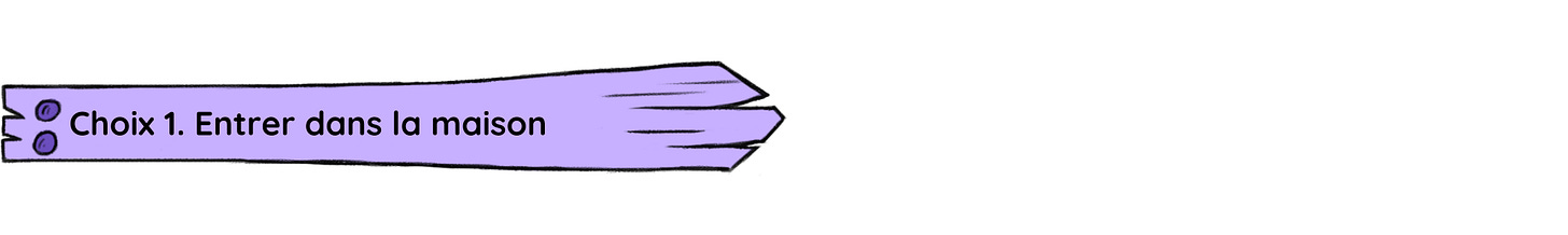 Qu'ils entrent ou non dans la maison. Les joueurs devront impérativement faire le tour de la maison et rencontrer Léon avant de retourner au village.Laissez les joueurs décider s’ils préfèrent entrer directement dans la maison (choix 1) ou en faire le tour (choix 2) .Vous pénétrez doucement dans la maison et découvrez une pièce chaleureuse qui est séparée en deux par un épais rideau beige.